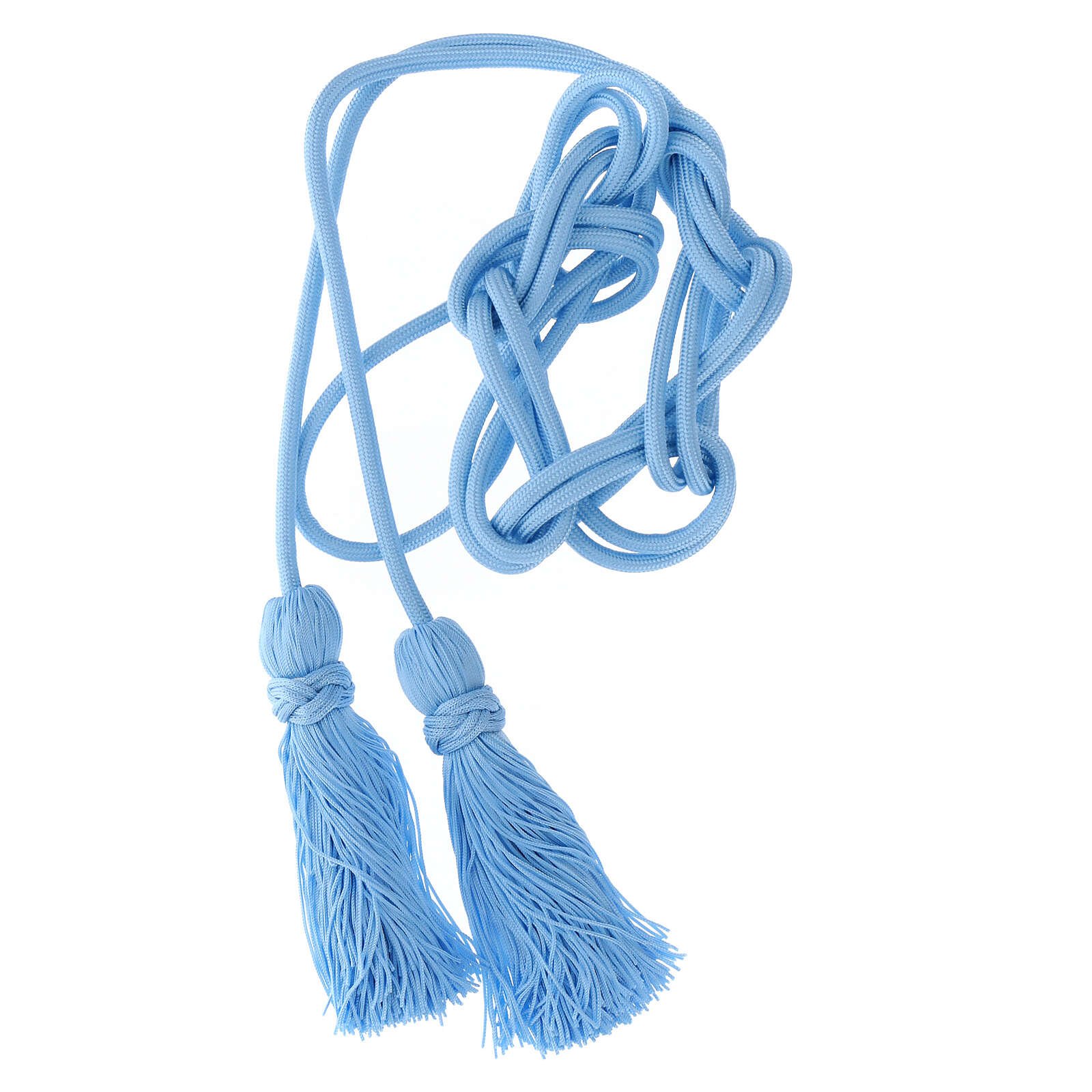 Priest cincture solid color Solomon knot light blue. Solid all colors rope cincture, with Solomon knot. It is produced in Italy by unidocent.com. Composition: Acetate 80%, Cotton 20%.
